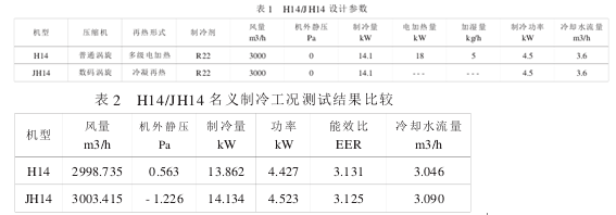 采用申菱公司的常规水冷恒温恒湿试验箱 H14 为研究对象, 改造为如图 2 所示系统的节能型高精度恒温恒湿试验箱 JH14, 机组的设计参数如下表 1: